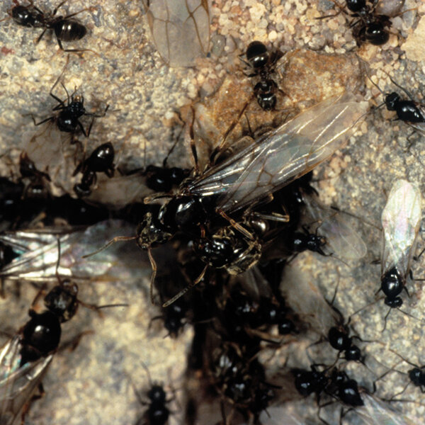 Sin embargo, en algunos lugares próximos al ser humano, las hormigas también pueden resultar dañinas y es necesario controlarlas. Puede encontrar más información acerca de las hormigas aquí y aquí. Las hormigas forman parte de los insectos «eusociales» (que crean colonias), al igual que las abejas y las avispas. La colonia de hormigas consta de una o varias reinas y trabajadoras sin alas que se encargan de abastecer a la descendencia, así como de la incubación. En una colonia de hormigas pueden vivir hasta 20 millones de insectos. En algunas épocas del año se presentan también machos y hembras con alas.